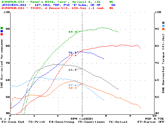 This can be seen in the following chart. This shows a stock 900SS, a ported, short manifold 944, and the 750 in question.